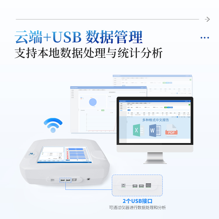 简要描述: 金标荧光一体机可存储500万条检测结果,支持按日期灵活查询、预览、删除结果,并生成多样化专业报告。内置热敏打印机,检测完成即可现场打印标准报告,提升工作效率。关键部件实时自诊断功能,保障仪器长期稳定运行。高速有线/无线网络及蓝牙,构建完善的数据监控平台,实现数据实时上传、远程查询、统计分析和监管协同。丰富的接口设计,轻松连接电脑、U盘、网络及上位机系统,支持U盘导出。